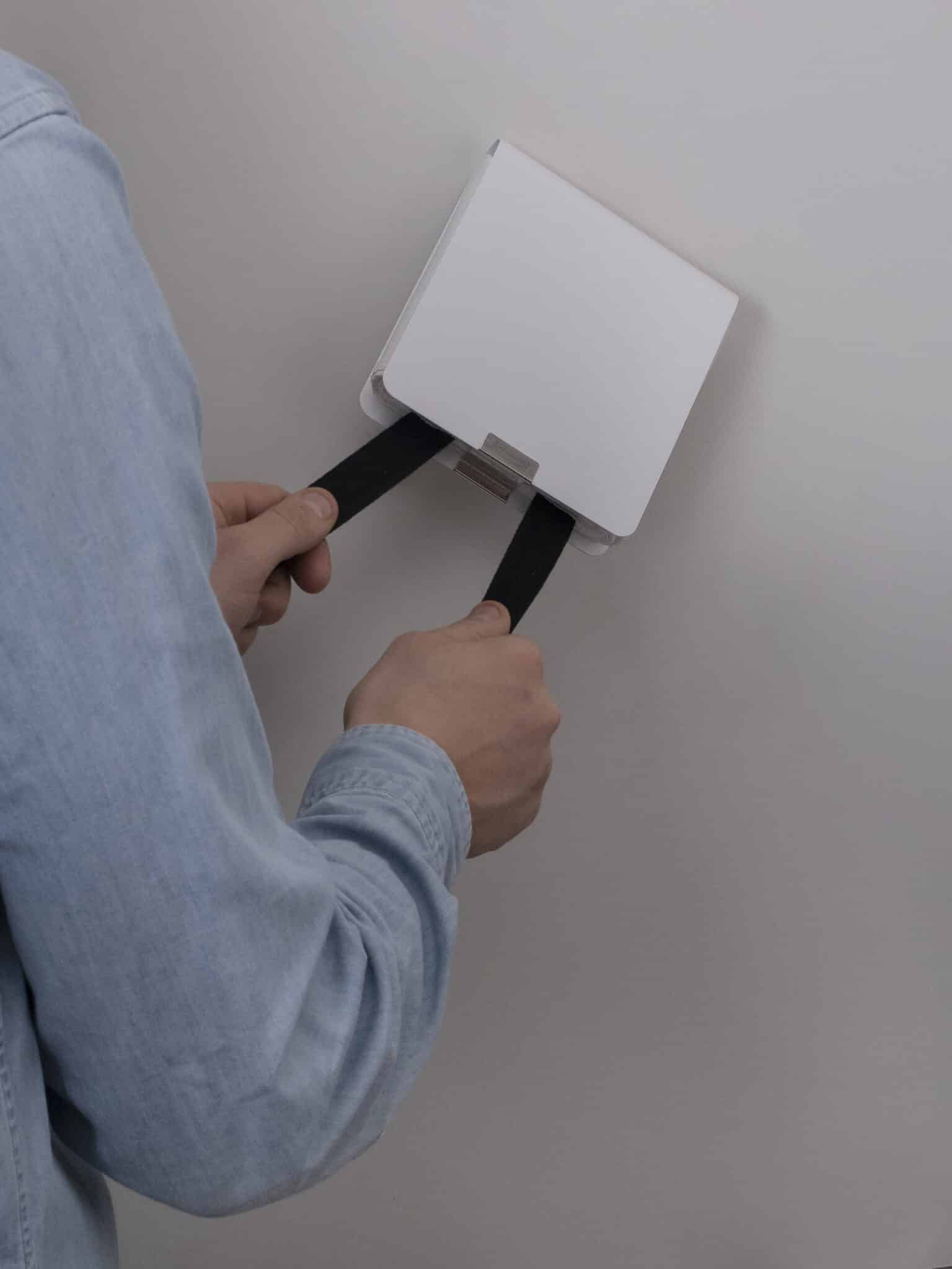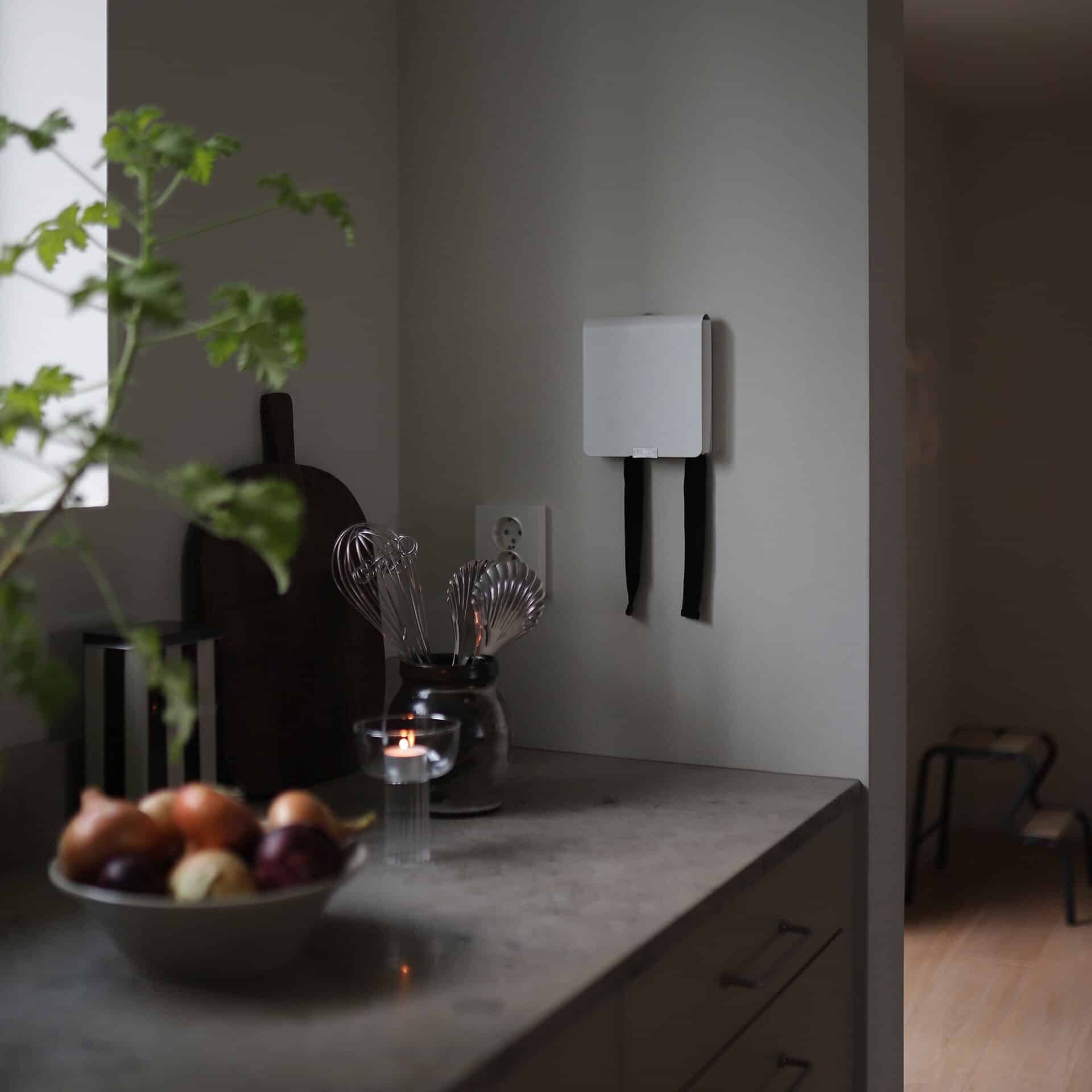 Brandtæppe, design 120 x 120, hvid er et æstetisk og funktionelt brandtæppe udviklet til hjemlige omgivelser, hvor brandsikring gerne må være synlig uden at virke teknisk eller dominerende. Brandtæppet Mantle er designet af industridesigner Lars Wettre og forener moderne formsprog med tidløs elegance. Designet er anerkendt internationalt og er vinder af Red Dot Award 2023.