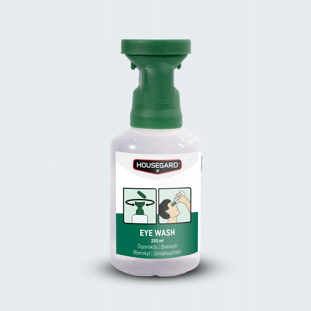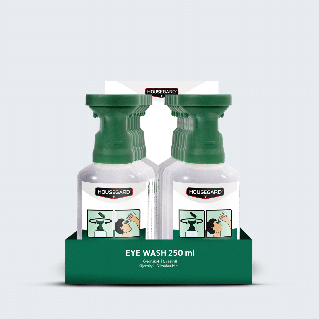 Øjenskylleflasken indeholder 250 ml steril saltvandsopløsning (NaCl 0,9 %) og er udviklet til hurtig førstehjælp ved irritation i øjet forårsaget af støv, snavs, spåner eller lignende partikler. Den fungerer som refill til førstehjælpsstationer og er kompatibel med Housegards løsninger, så den altid er klar til brug, når behovet opstår.